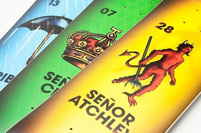 Using both traditional and digital illustration techniques, I created this series of board graphics for Tribute that was sold internationally.